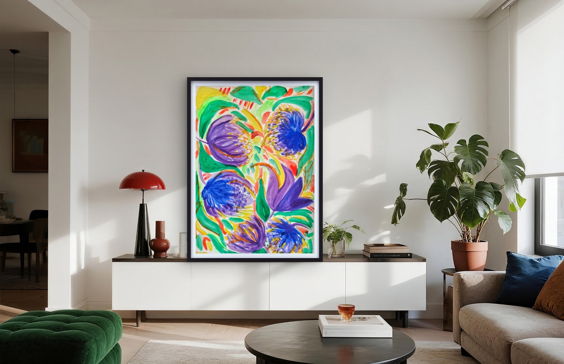 A vibrant work ideal for collectors drawn to expressive florals and uplifting, contemporary art.