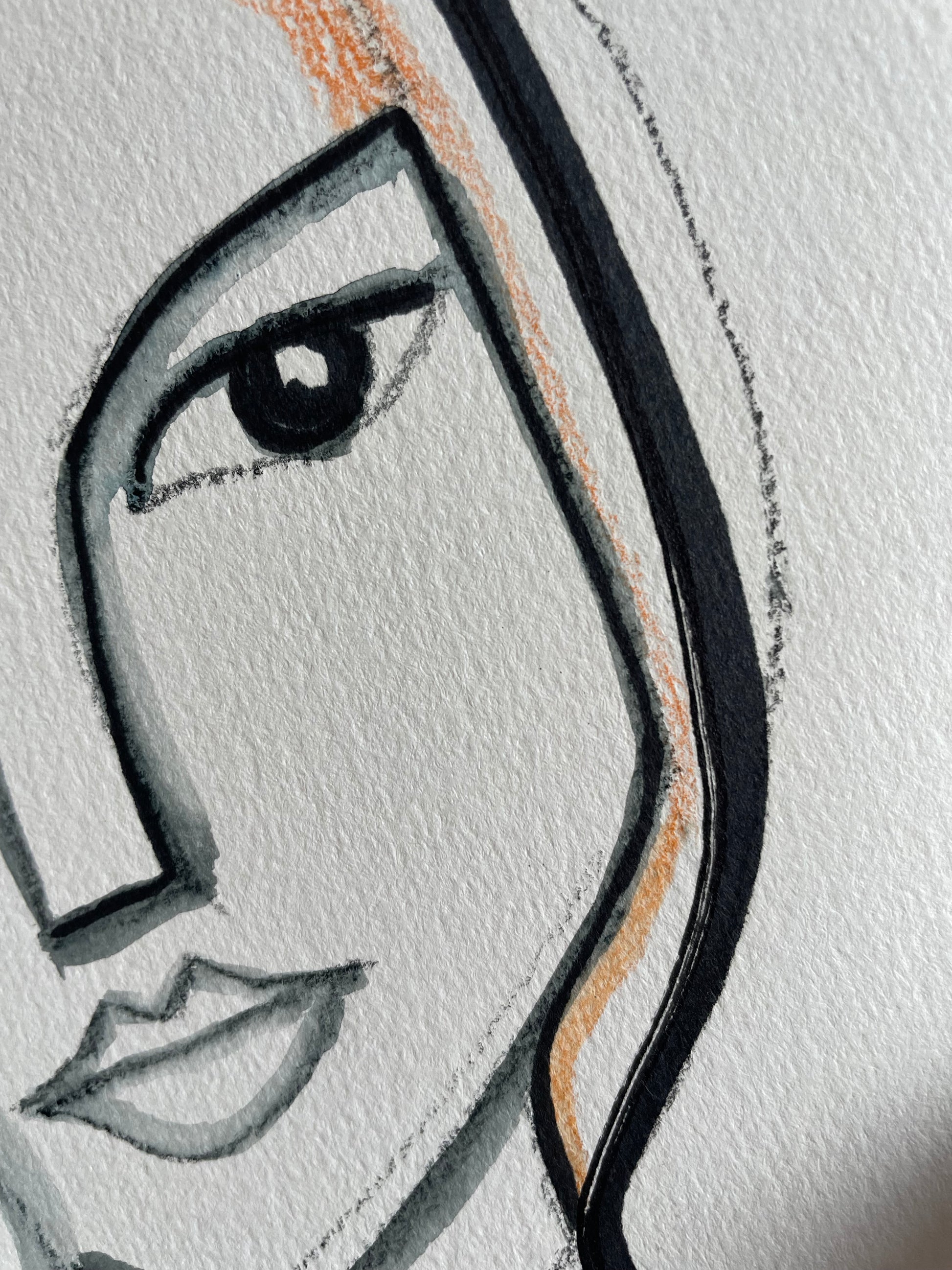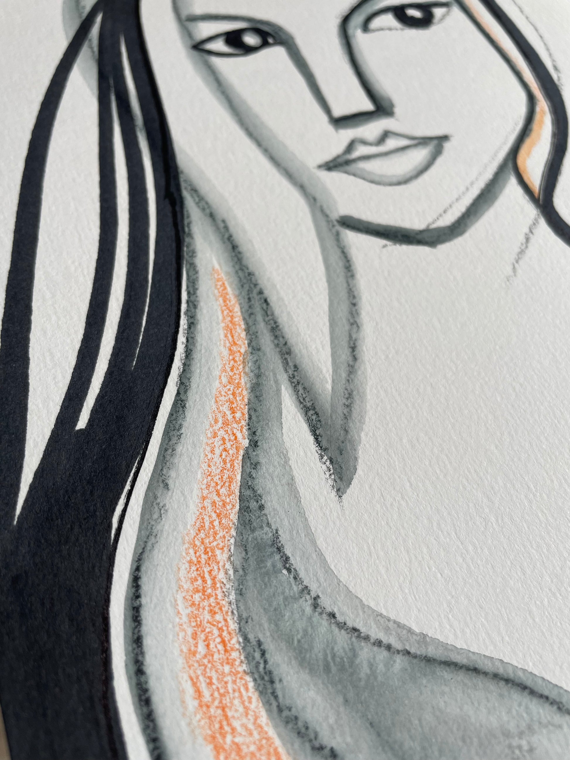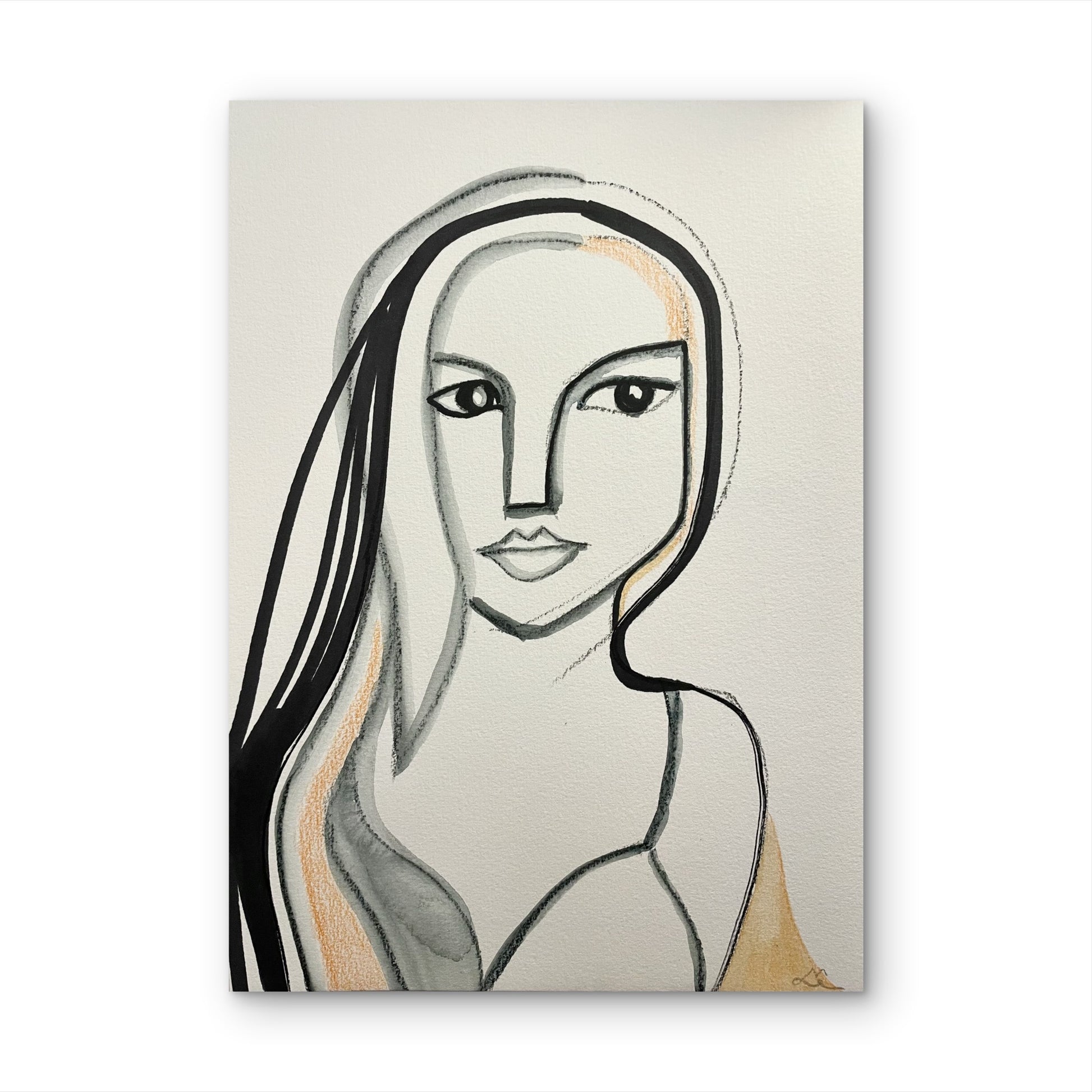 Dara is an expressive portrait that captures the power and mystery of the eternal feminine from a contemporary perspective. Created on textured paper using watercolor crayons and color pencils, this original artwork explores the multifaceted nature of identity through bold lines, vibrant color, and emotional depth.