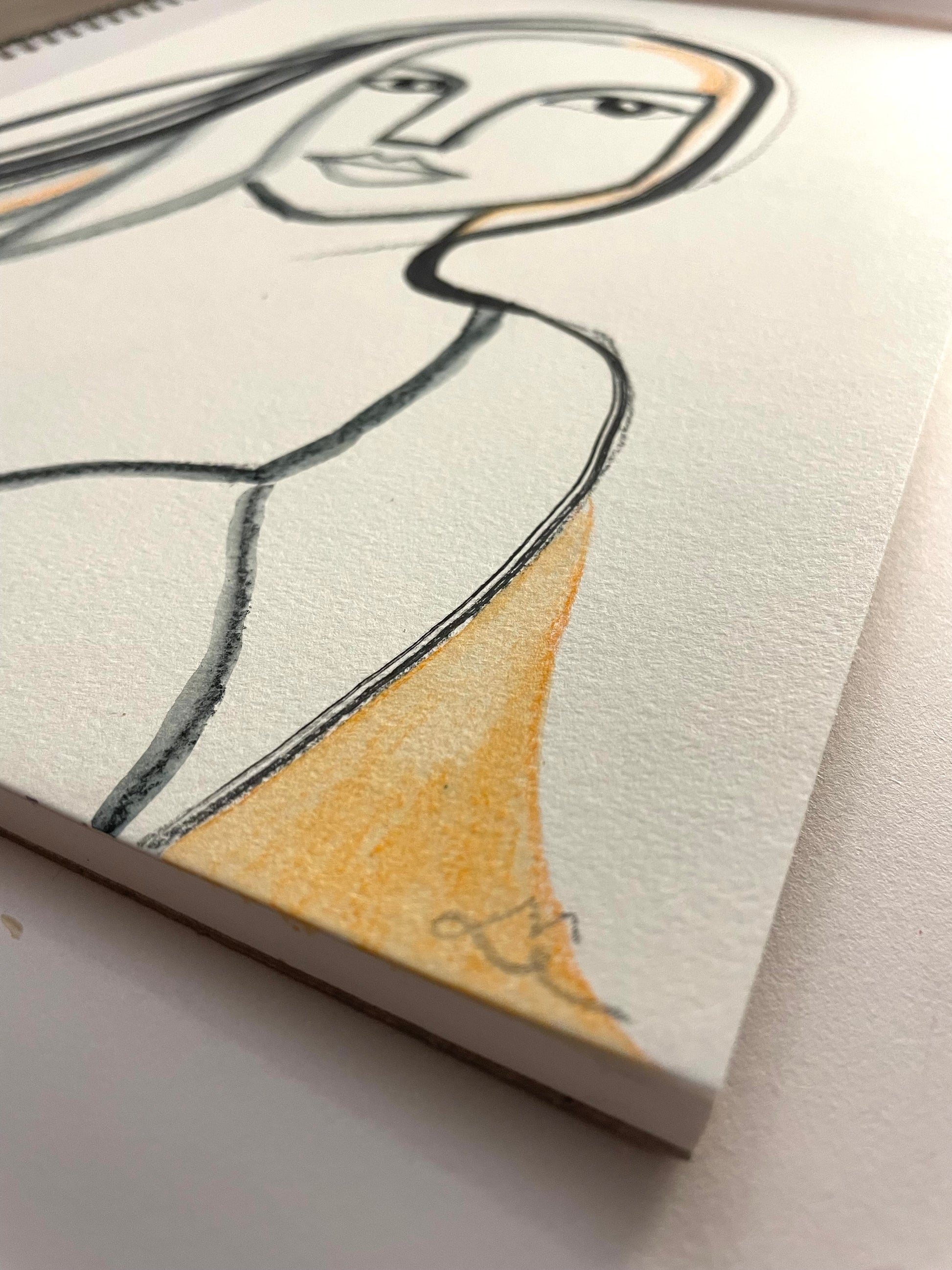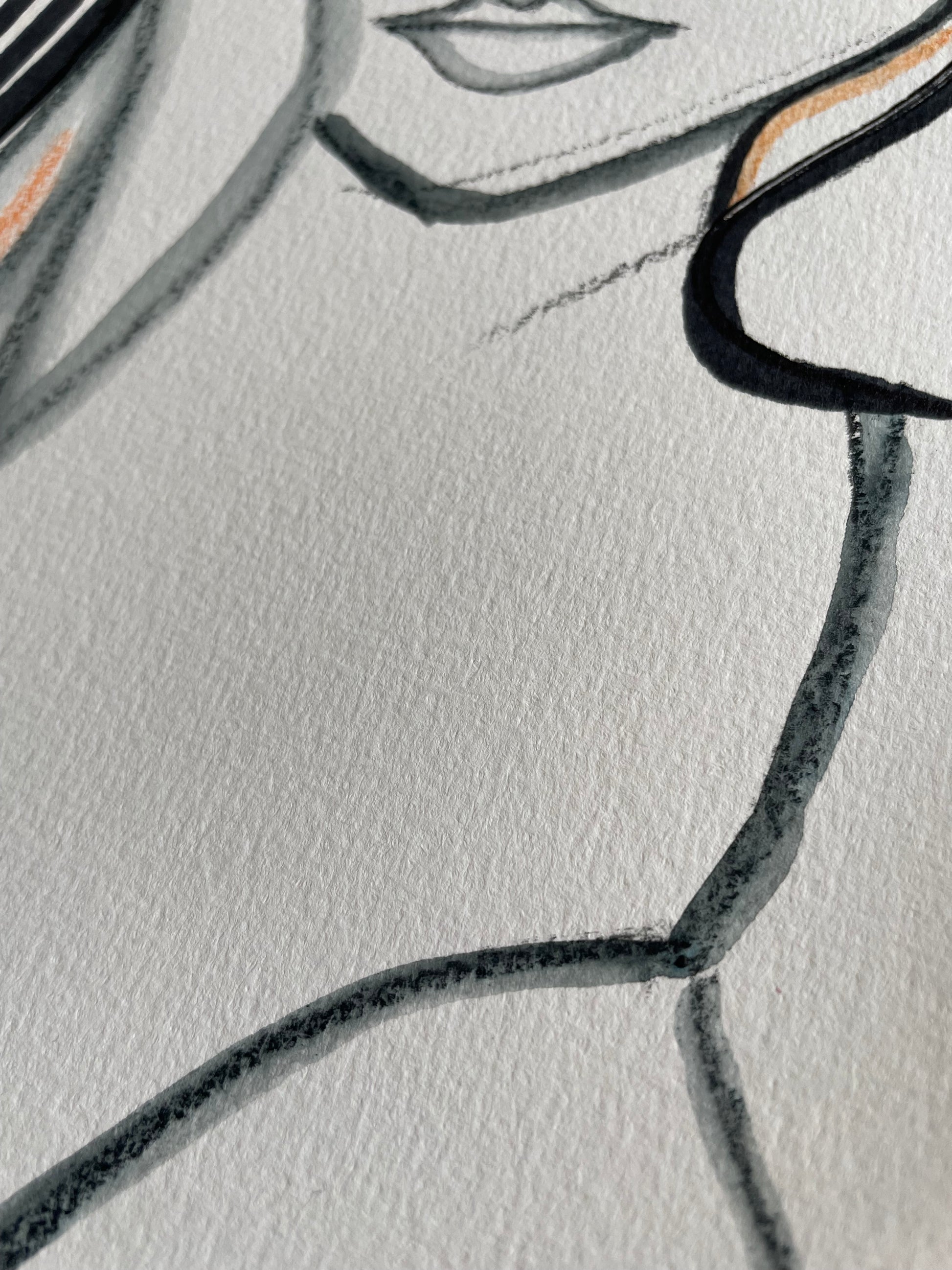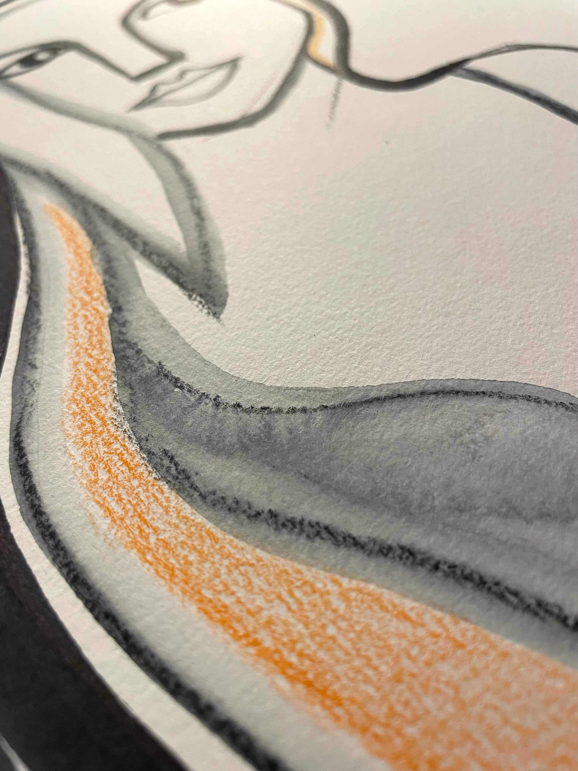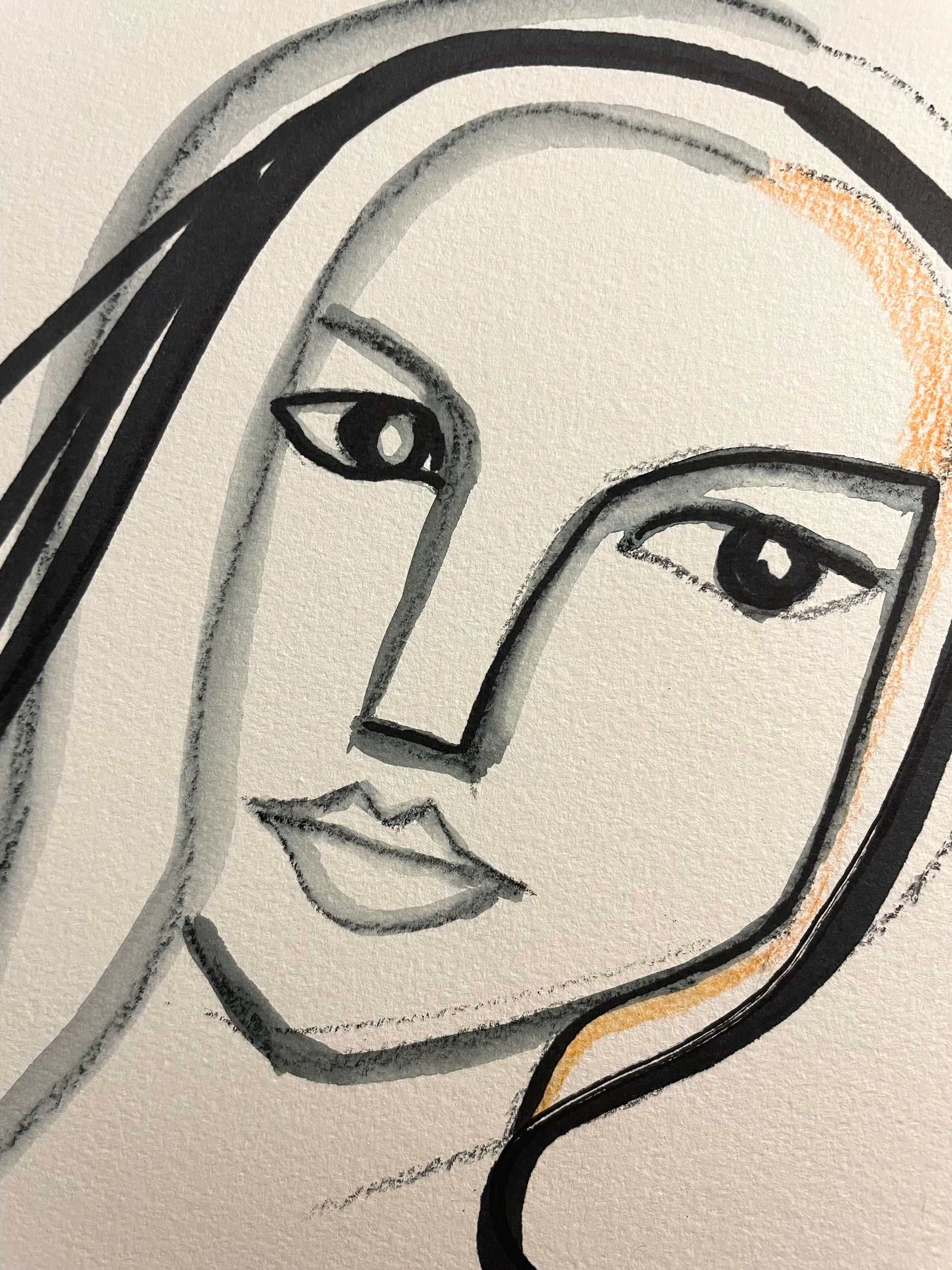 Dara is an expressive portrait that captures the power and mystery of the eternal feminine from a contemporary perspective. Created on textured paper using watercolor crayons and color pencils, this original artwork explores the multifaceted nature of identity through bold lines, vibrant color, and emotional depth.