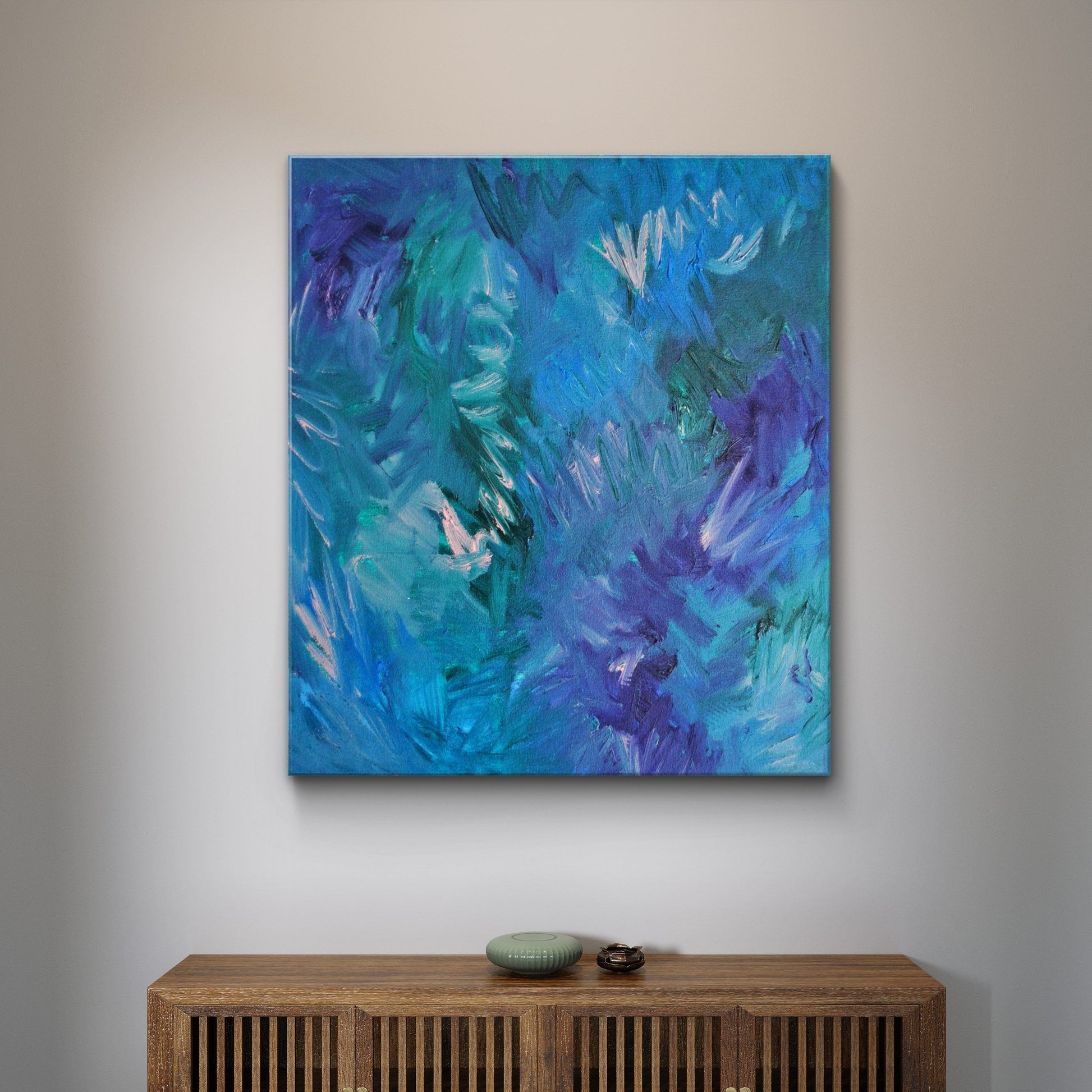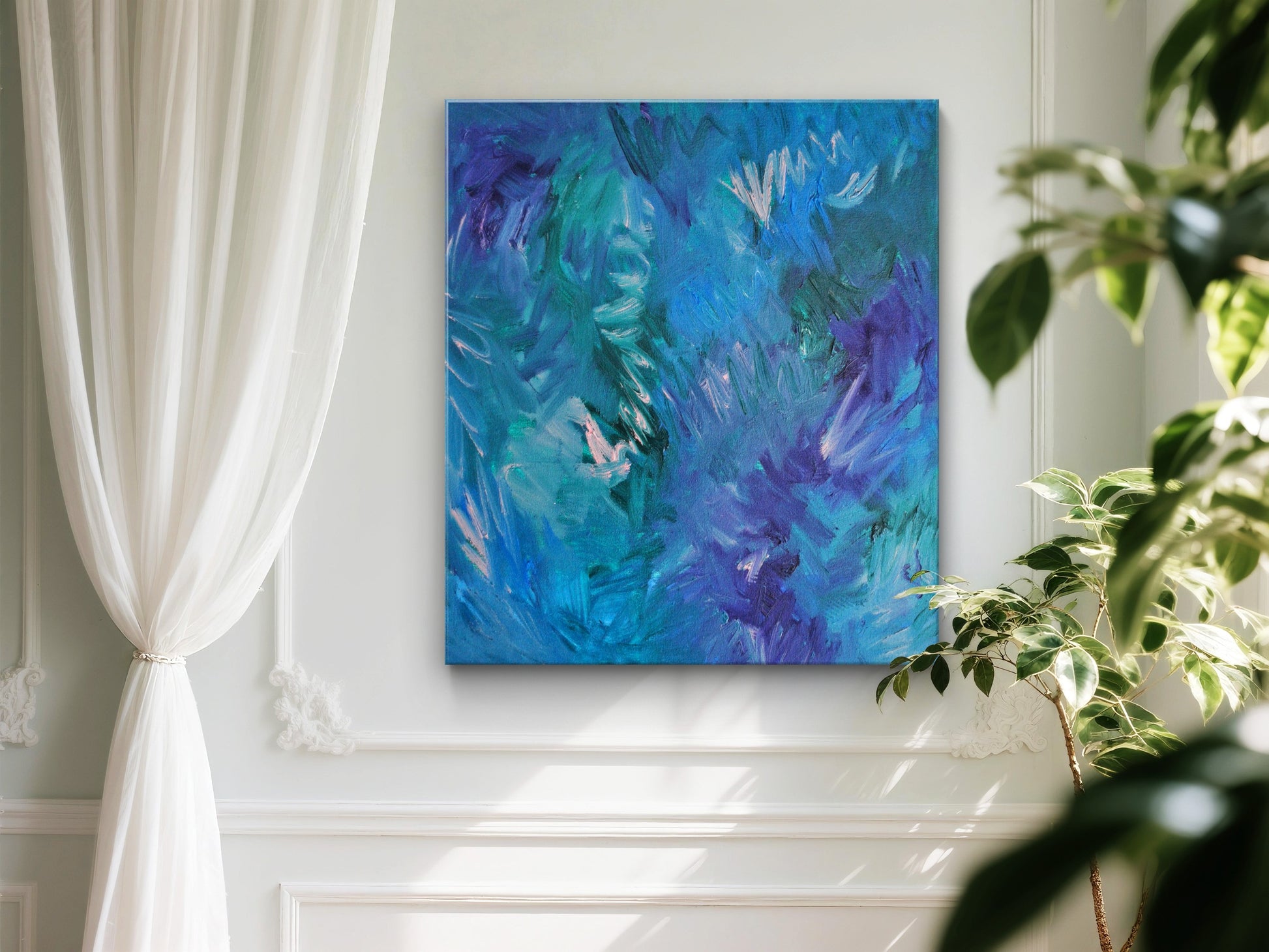Sounds of the Mythical Forest is a sensorial painting that explores the vibrant auditory soul of the forest at twilight. Deeper in tone and more dynamic in gesture than its companion piece (Evenings in the Mythical Forest), this artwork evokes the hushed, electric atmosphere one experiences when surrounded by the living presence of nature.